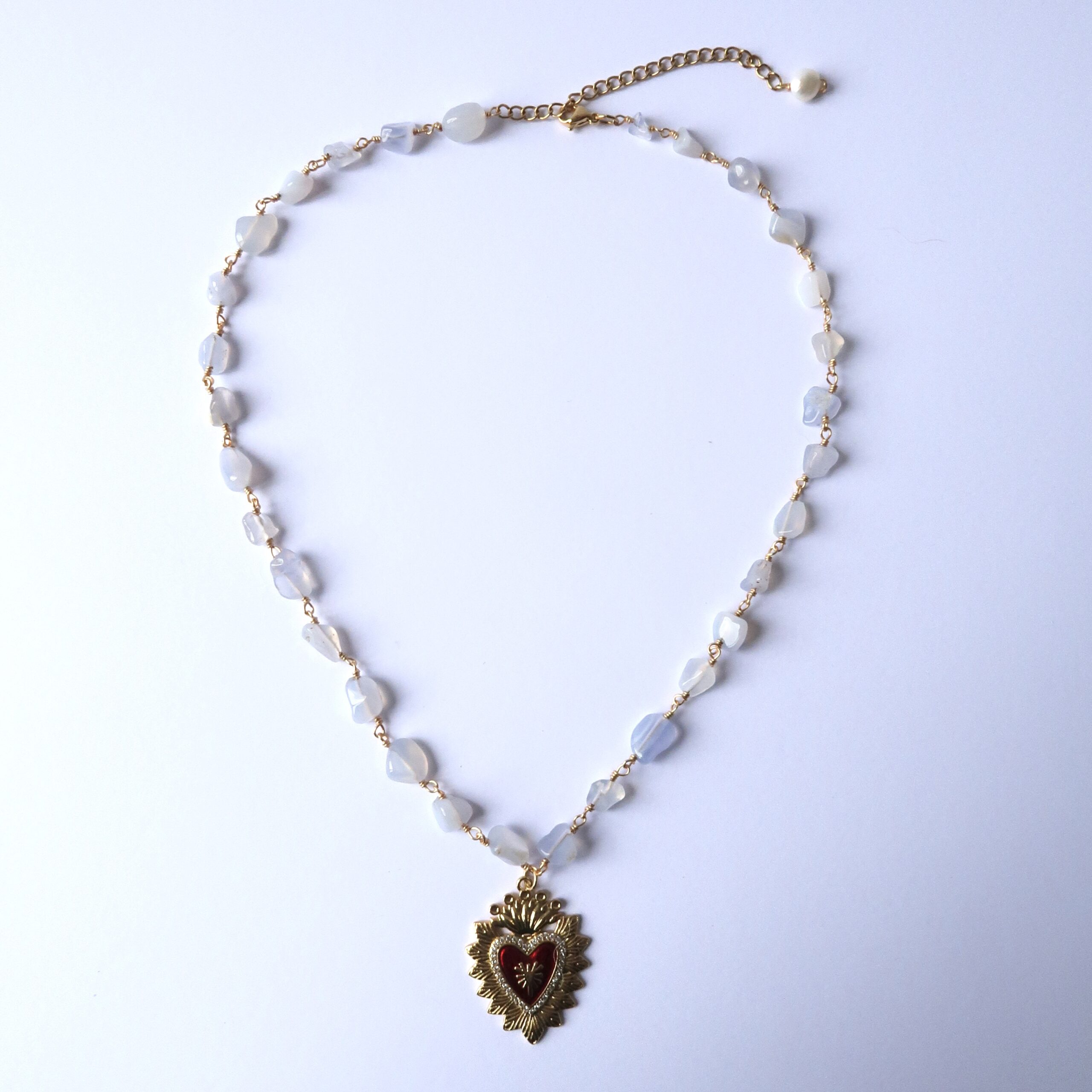 Collier de 42 cm avec une chaîne ajustable de 7 cm.